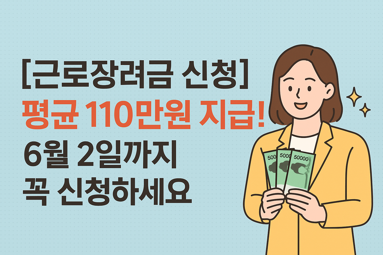 [근로장려금 신청] 평균 110만원 지급! 6월 2일까지 꼭 신청하세요