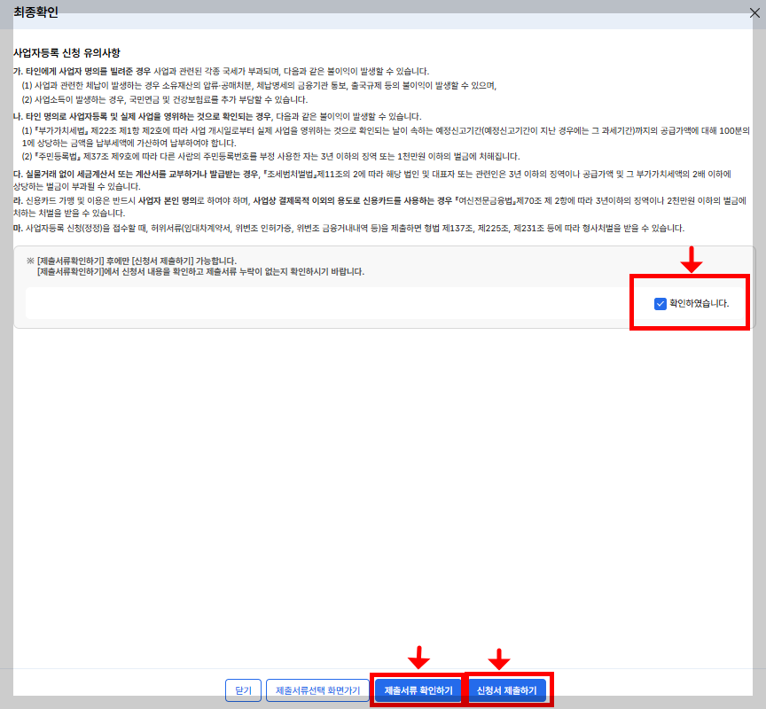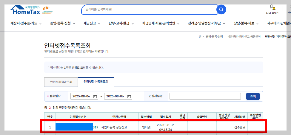 - 홈택스 → 민원처리결과 조회 → 사업자등록증 출력