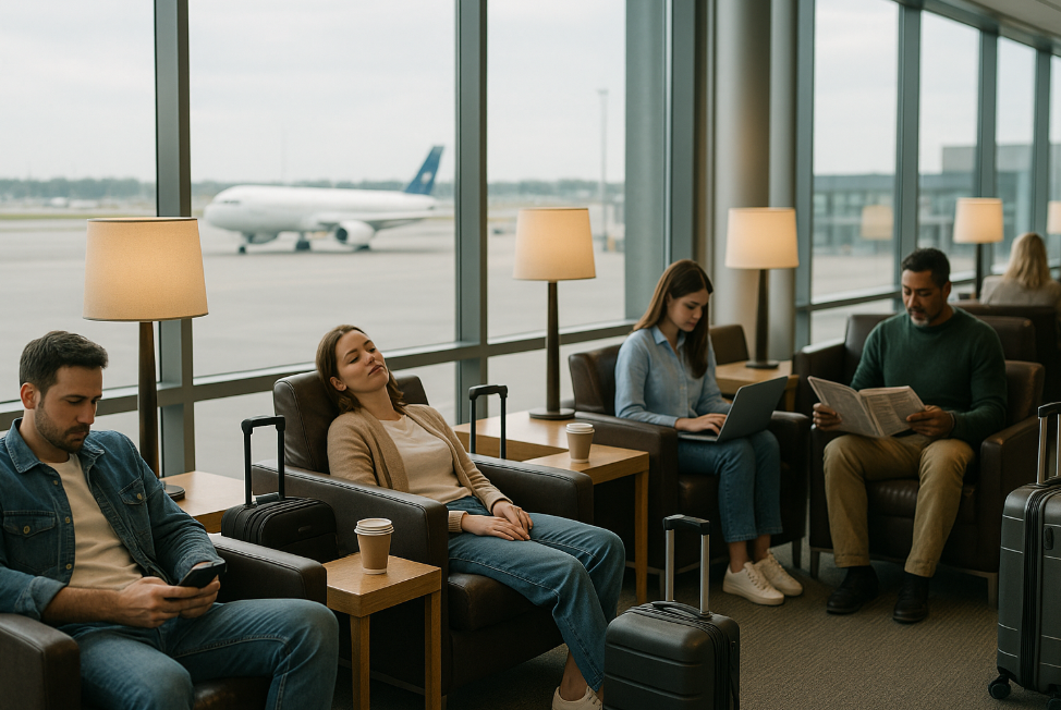 탑승객들은 인천공항 라운지에서 대기하며 휴식을 취했습니다.