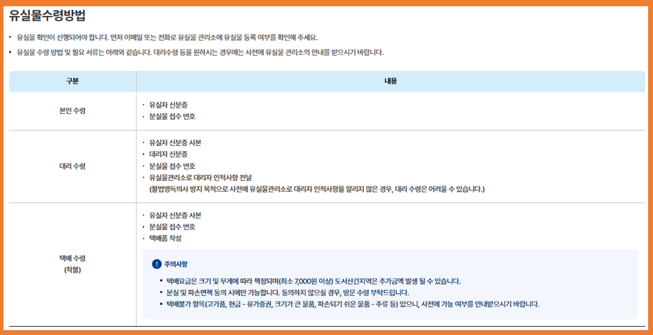 - 일반적으로 유실물은 7일간 보관 후 이관됩니다.