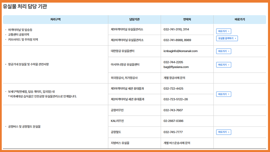 - 기내 분실물은 탑승한 항공사에 직접 문의해야 합니다.