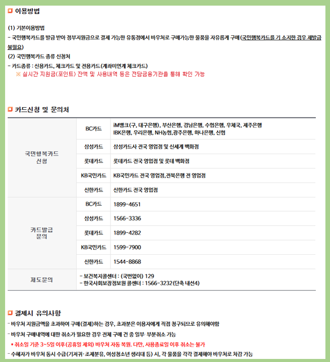 - 카드 결제 시 반드시 국민행복카드 사용